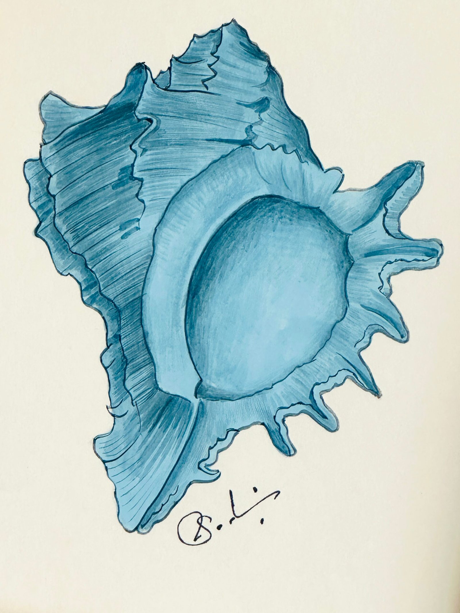 Hand-Painted Blue Seashell Painting
