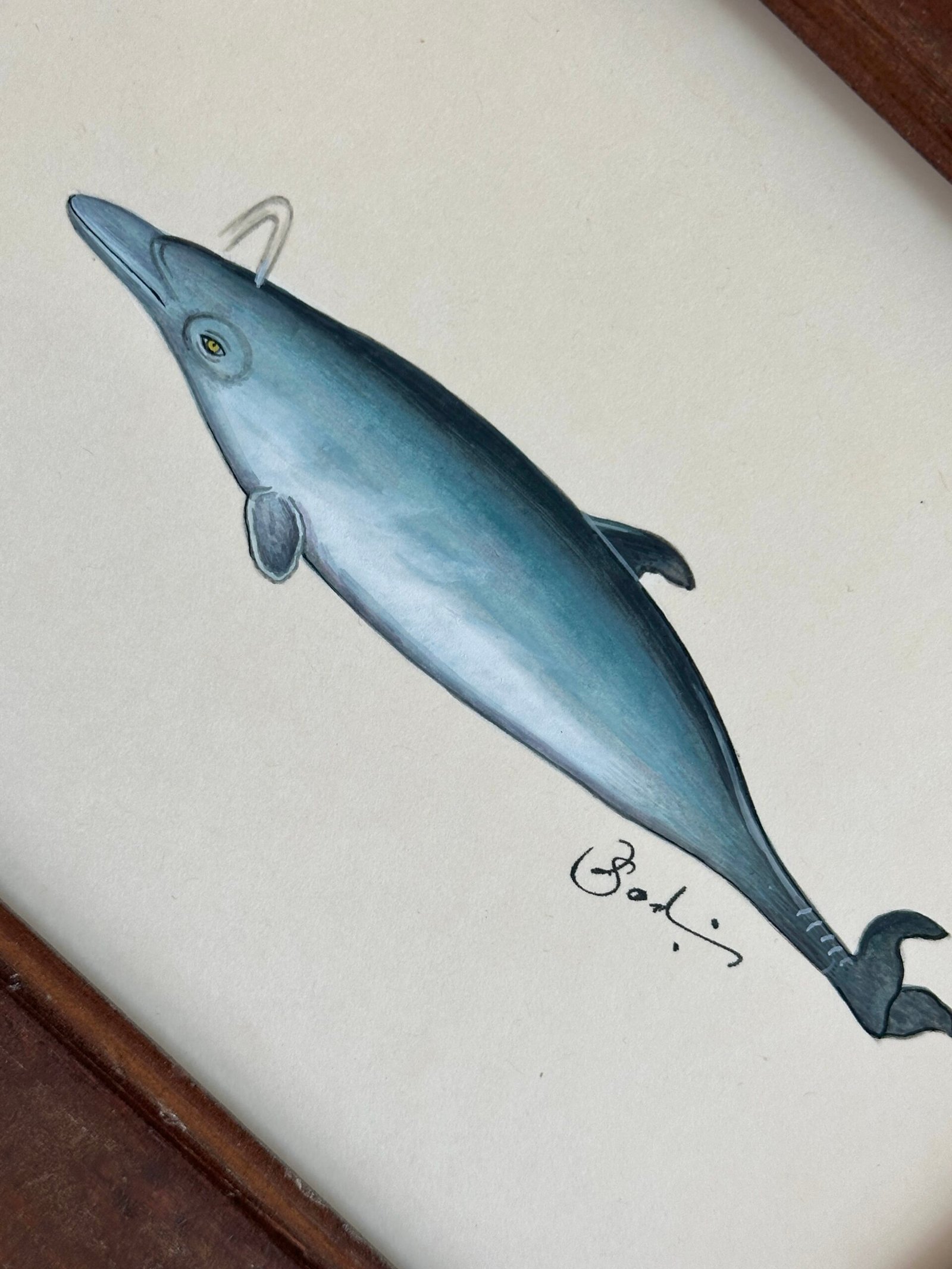 Meet Lunar, hand-painted with the softest washes of ocean blues and misty grays, he feels like a little dream from the sea. Every curve is shaded delicately to give that gentle, flowing movement, as if he’s gliding through calm waters. The detailing is kept subtle and refined, letting the layers of color speak quietly but beautifully.