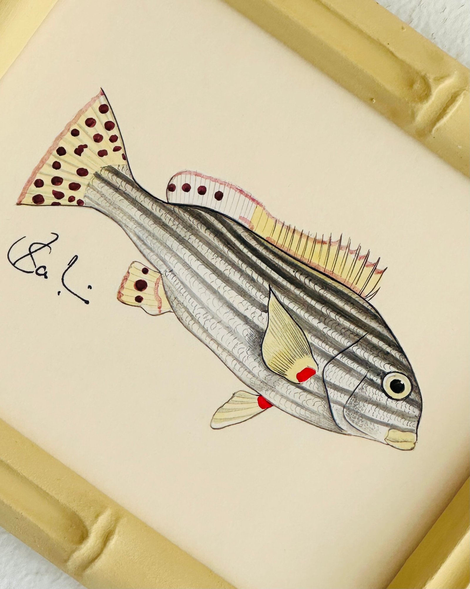 Say hello to Butterscotch, our hand-painted yellow striped fish, a tiny marvel brought to life by the skillful hands of our senior artist. Every stripe and shimmer has been carefully layered to capture not just color, but personality. From the gentle curve of its fins to the playful glint in its eye, this little fish seems almost alive, carrying a whimsical expression that will brighten any space.