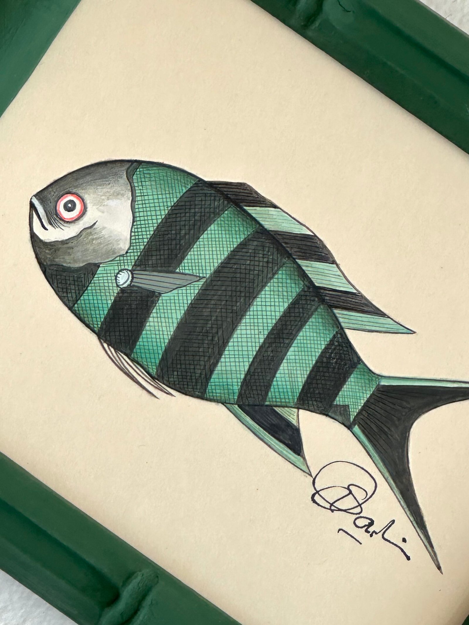 Meet Jade, our handpainted green and black striped fish, full of charm and personality! Every stripe and subtle shimmer has been meticulously crafted by our senior artist, bringing out his playful expression and lively spirit. From the gentle curve of his fins to the sparkle in his eye, Jade feels almost alive — a tiny marvel of craftsmanship.