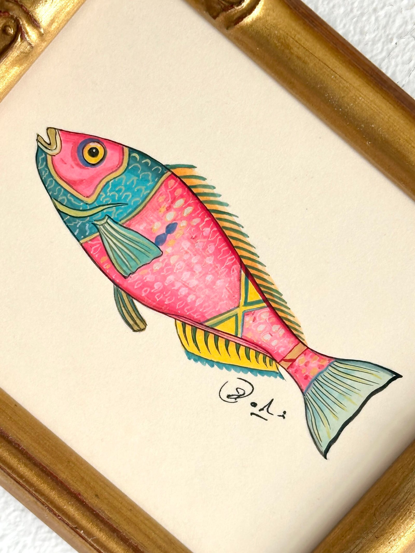 Our exquisite hand-painted fish series, a true testament to the mastery of our team of miniature artists. Each piece is meticulously crafted, ensuring a depth of color and detail that brings these aquatic beauties to life. Inspired by the vibrant patterns of marine life, these paintings are rich in precision, and artistry—every scale, fin, and delicate brushstroke capturing the essence of the underwater world.