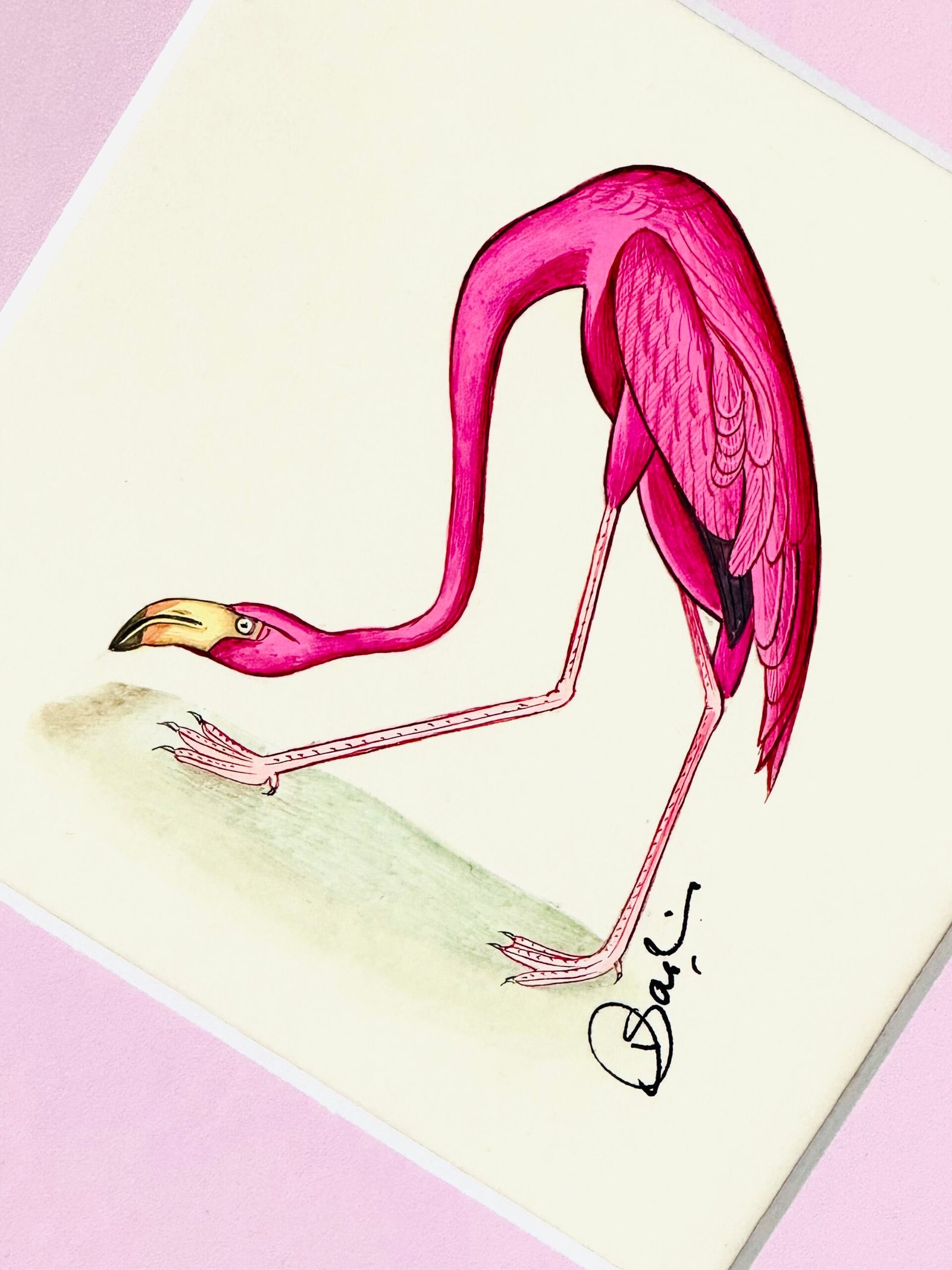 Hand-Painted Flamingo Painting, Pinkabella