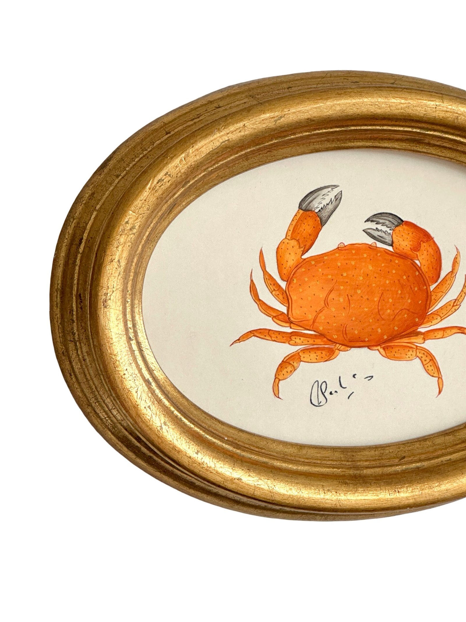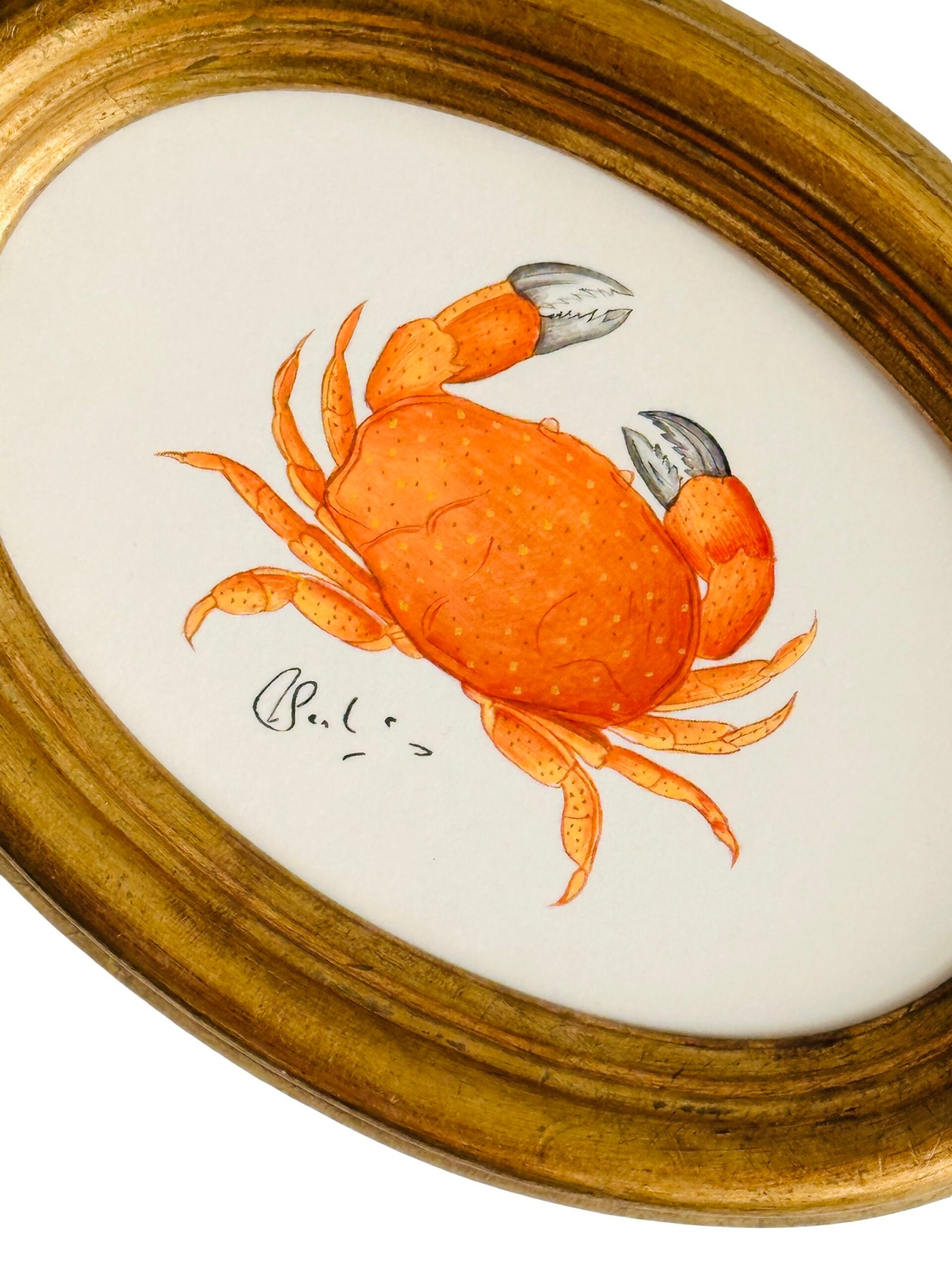 Hand-Painted Orange Crab Painting, Coral