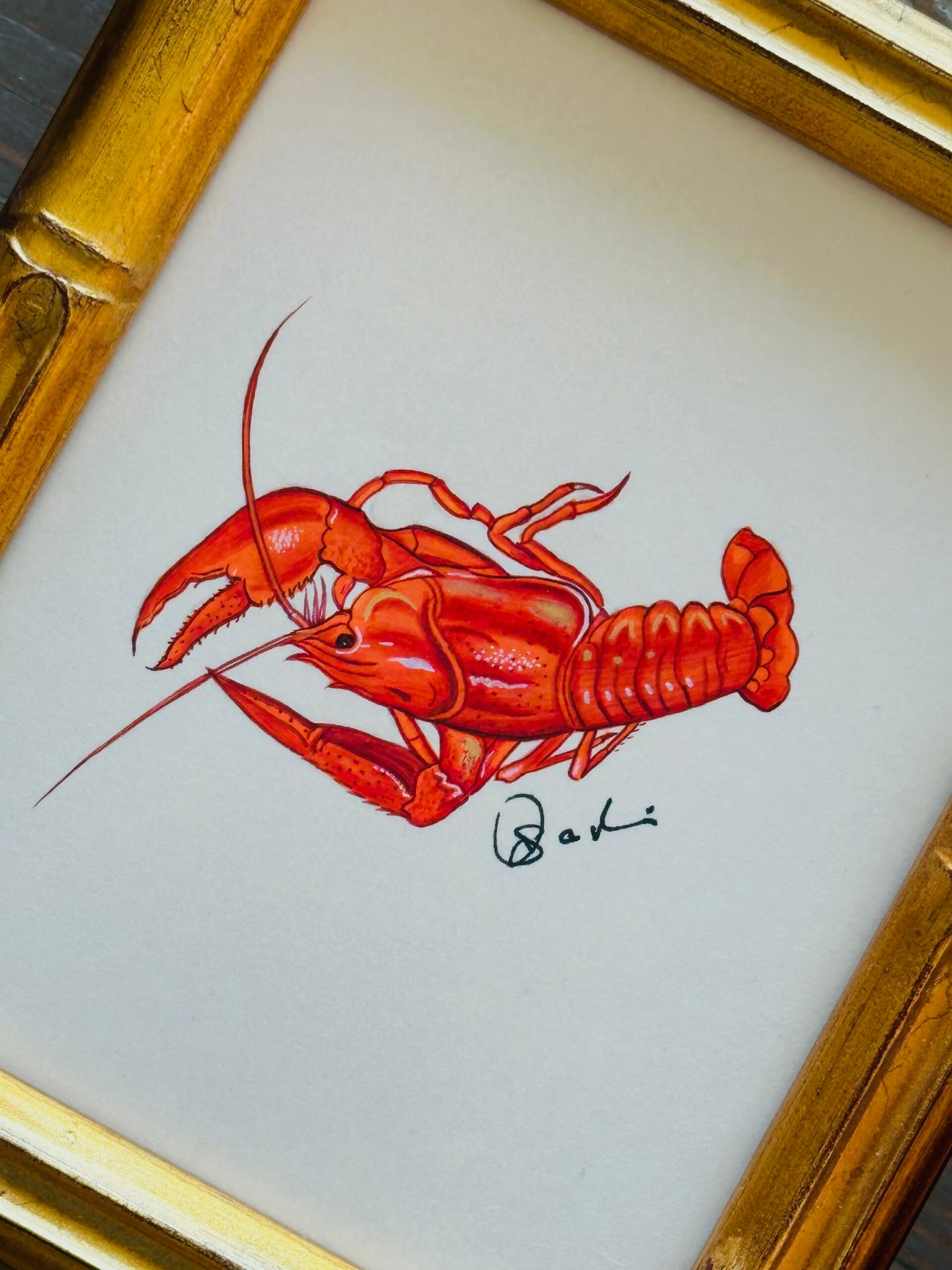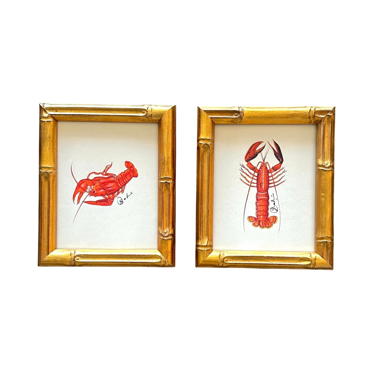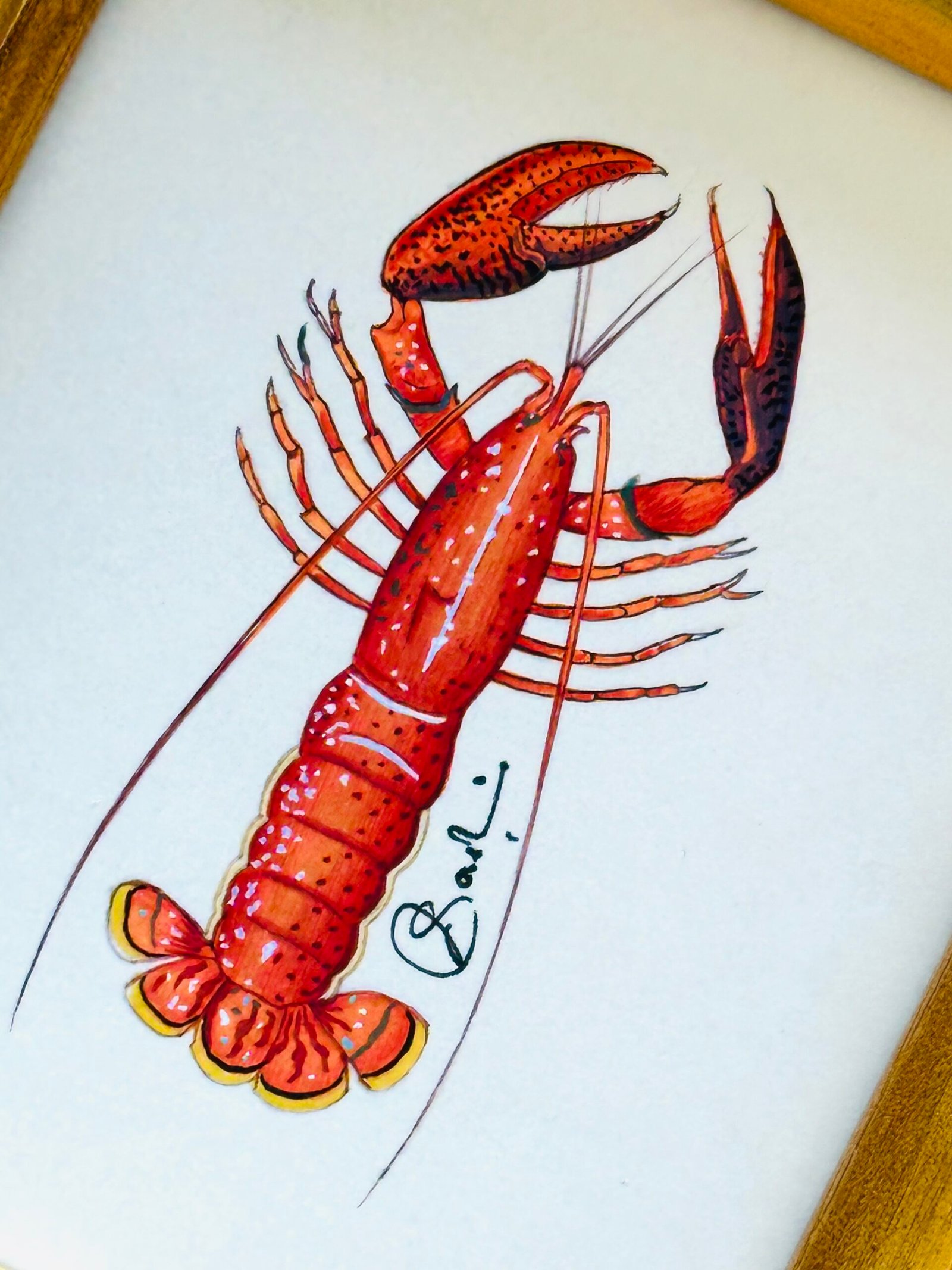 A pair of striking lobster — each one meticulously hand-painted in the most vibrant shade of coastal orange. Our master artist layered multiple tones to create that luminous shell glow: soft apricot washes, deeper coral shadows, and tiny highlights that make every segment look almost three-dimensional. Starting from the finesse in the claws, the delicate articulation of each leg, the fine whisker lines, and the subtle gradient on the tail fan — all those little moments of artistry that make these pieces truly a work of art.