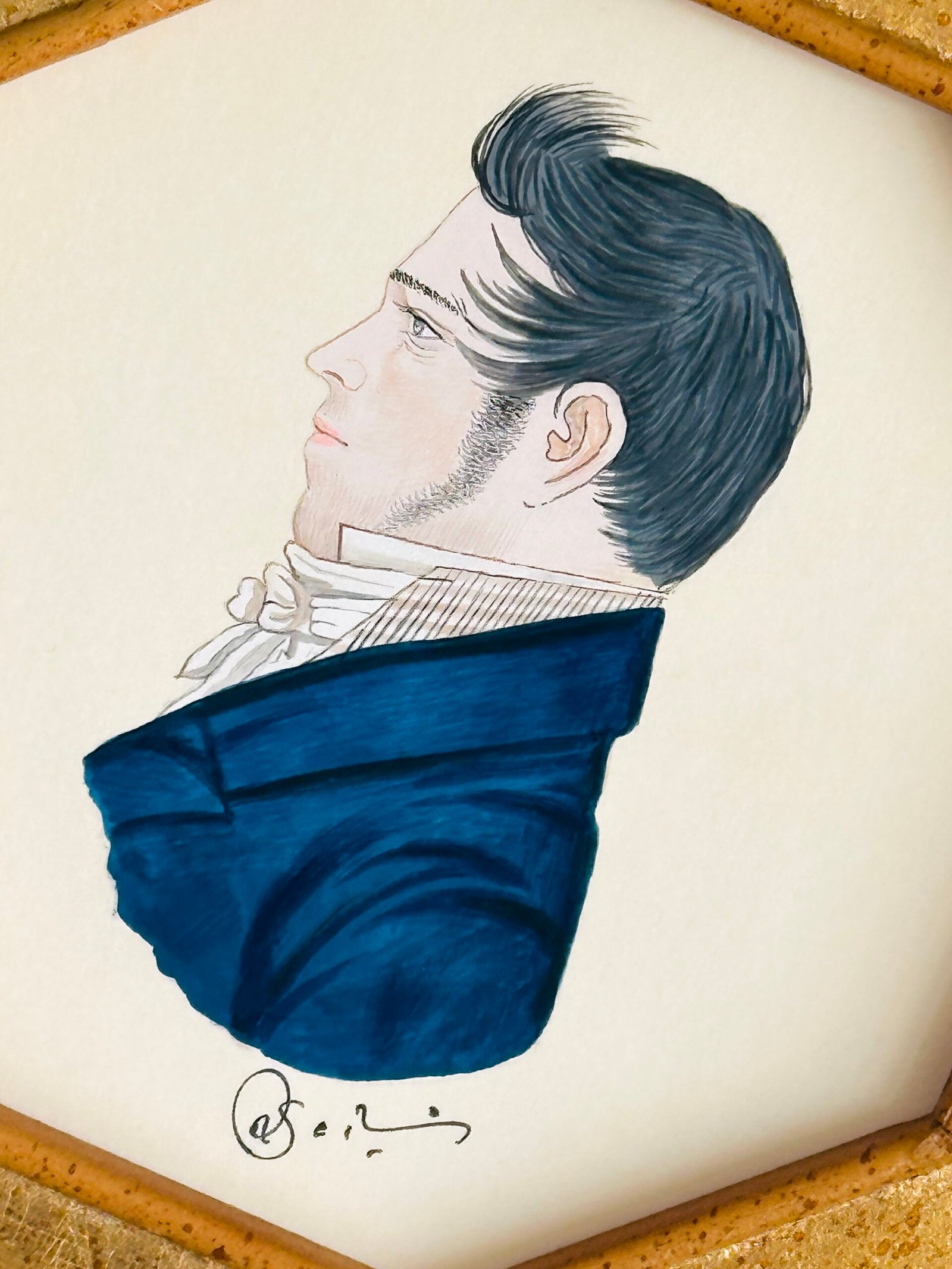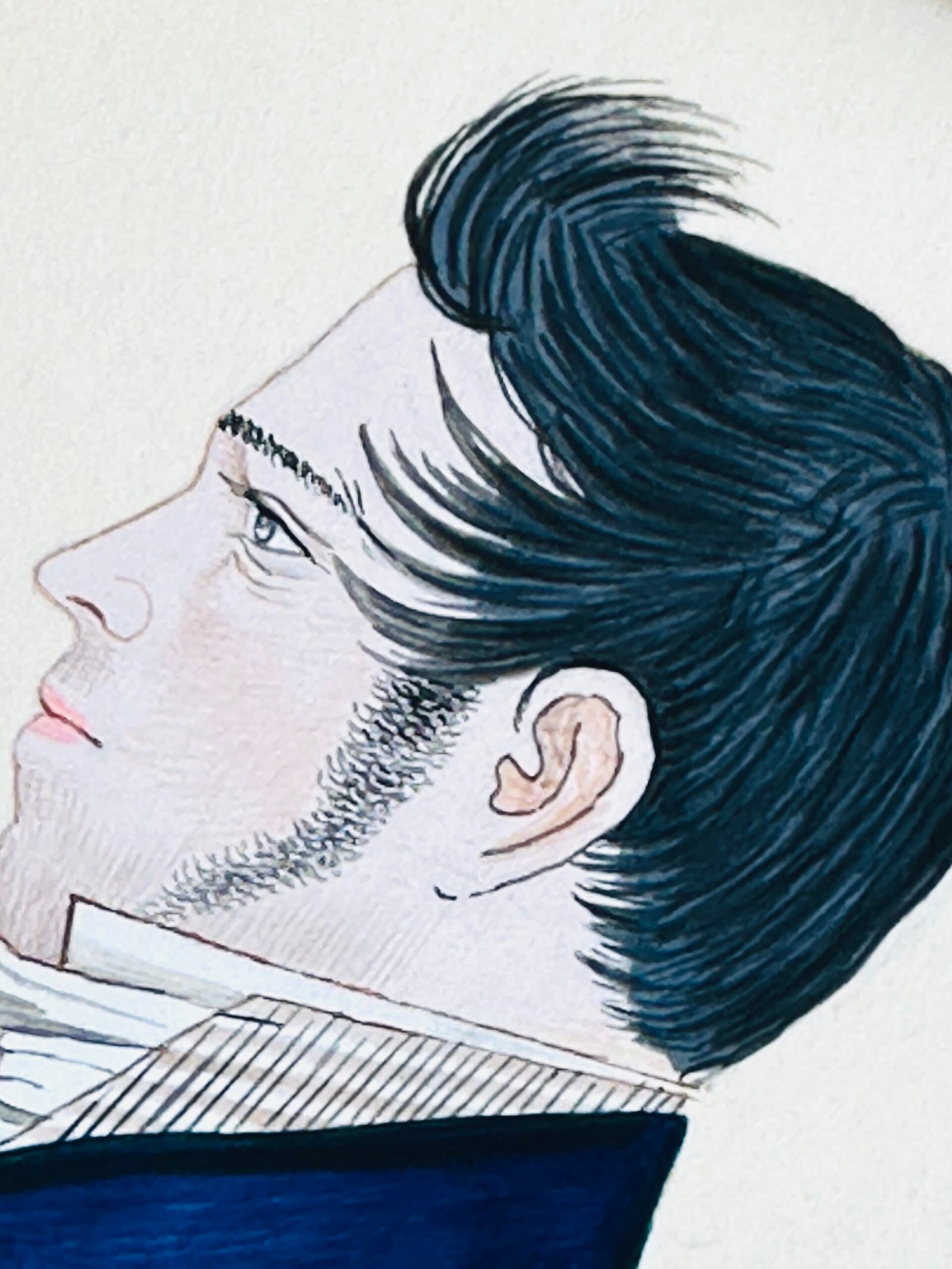 This Victorian-inspired portrait is hand-painted by our very senior master artist, drawing from classic Victorian portraiture with a sharp eye for accuracy and refinement. The expression is thoughtfully executed—subtle, composed, and true to the era—capturing a calm confidence without exaggeration. Special attention has been given to the softness of the face, with smooth transitions in skin tones and carefully layered shading that creates depth while keeping the features delicate and natural. A fresh direction for us, rooted in tradition and defined by craftsmanship.
